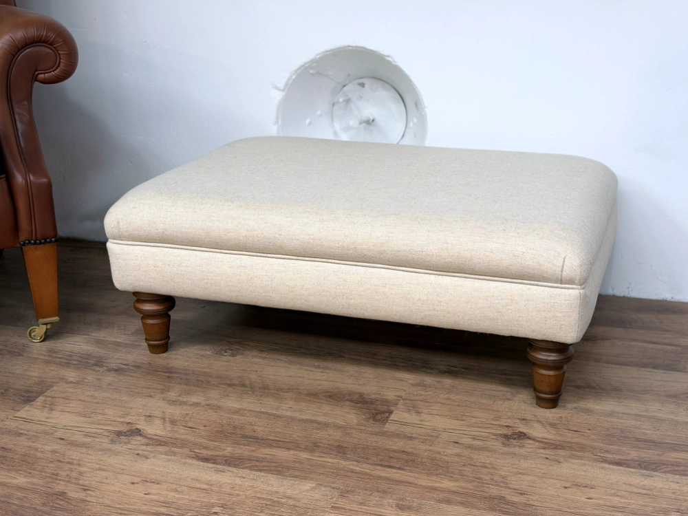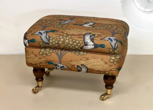 It is then upholstered by a skilled upholsterer taking time and care to ensure your finished footstool is both comfy enough to use as an occasional seat and a foot rest.